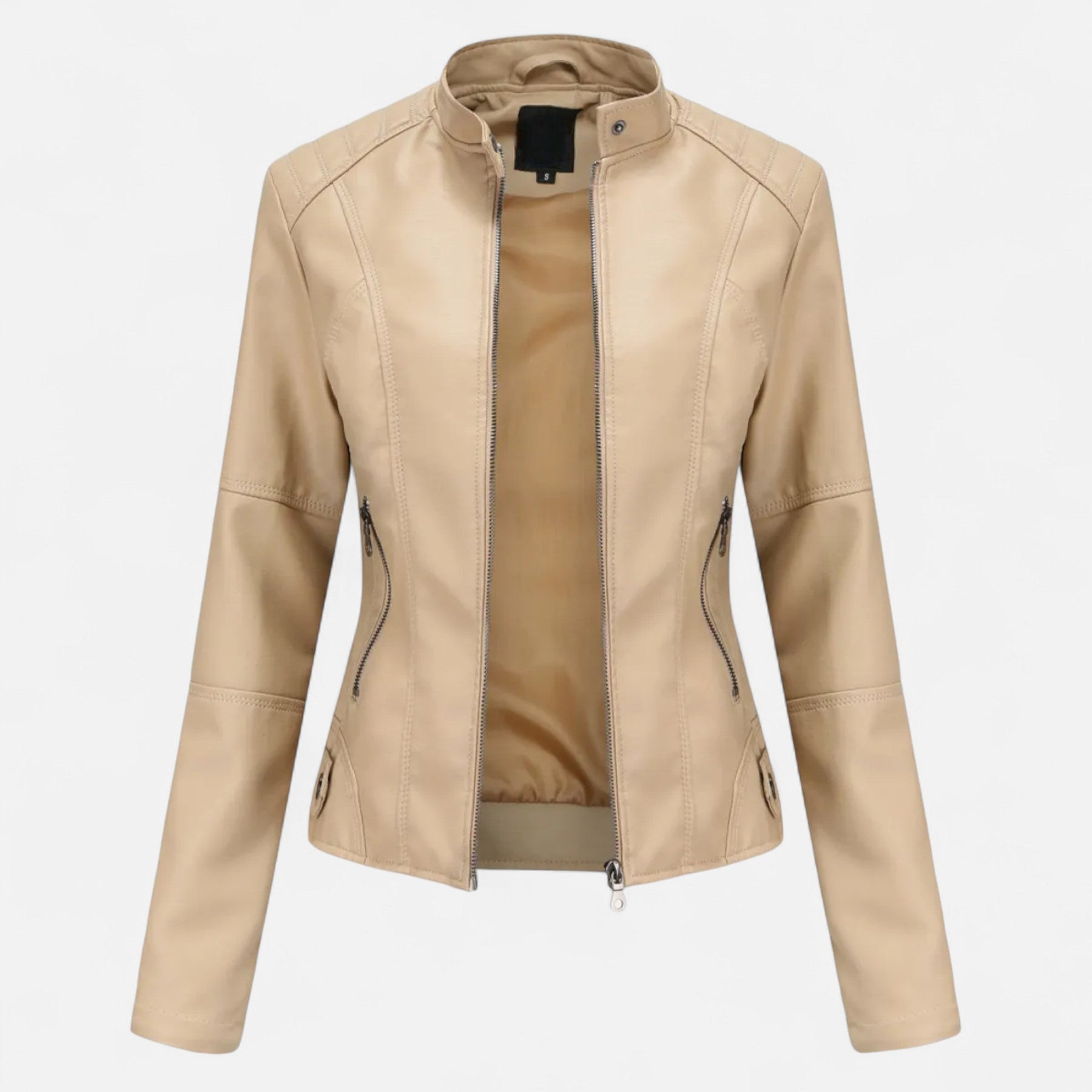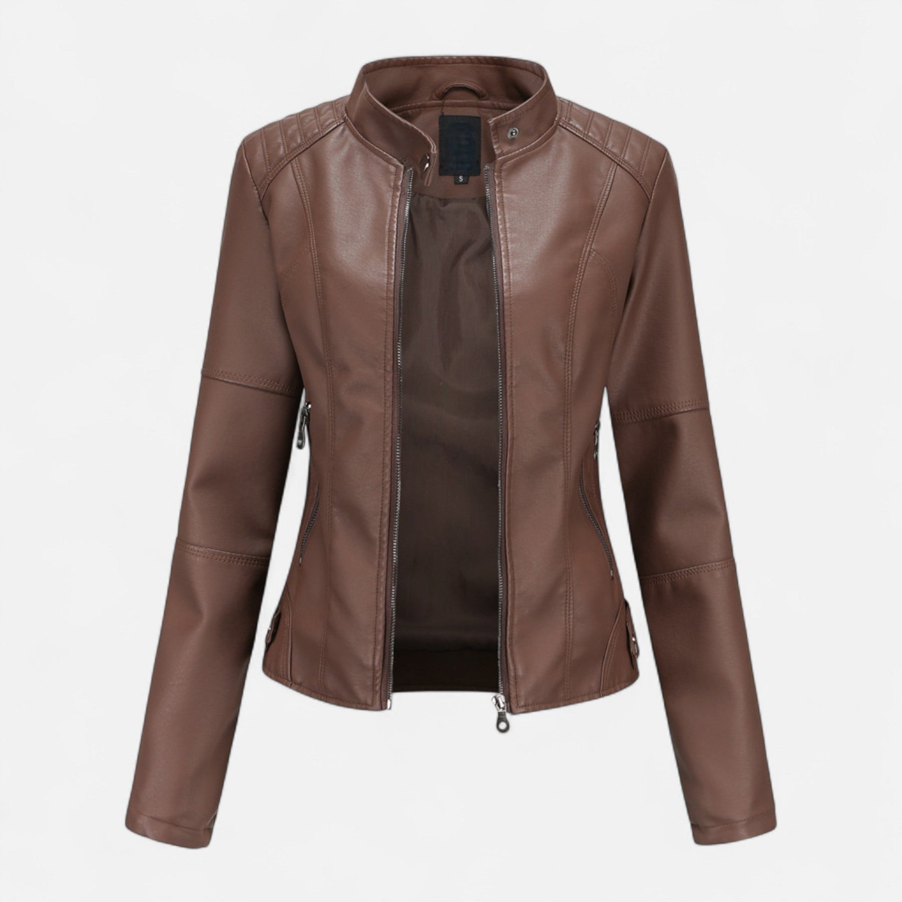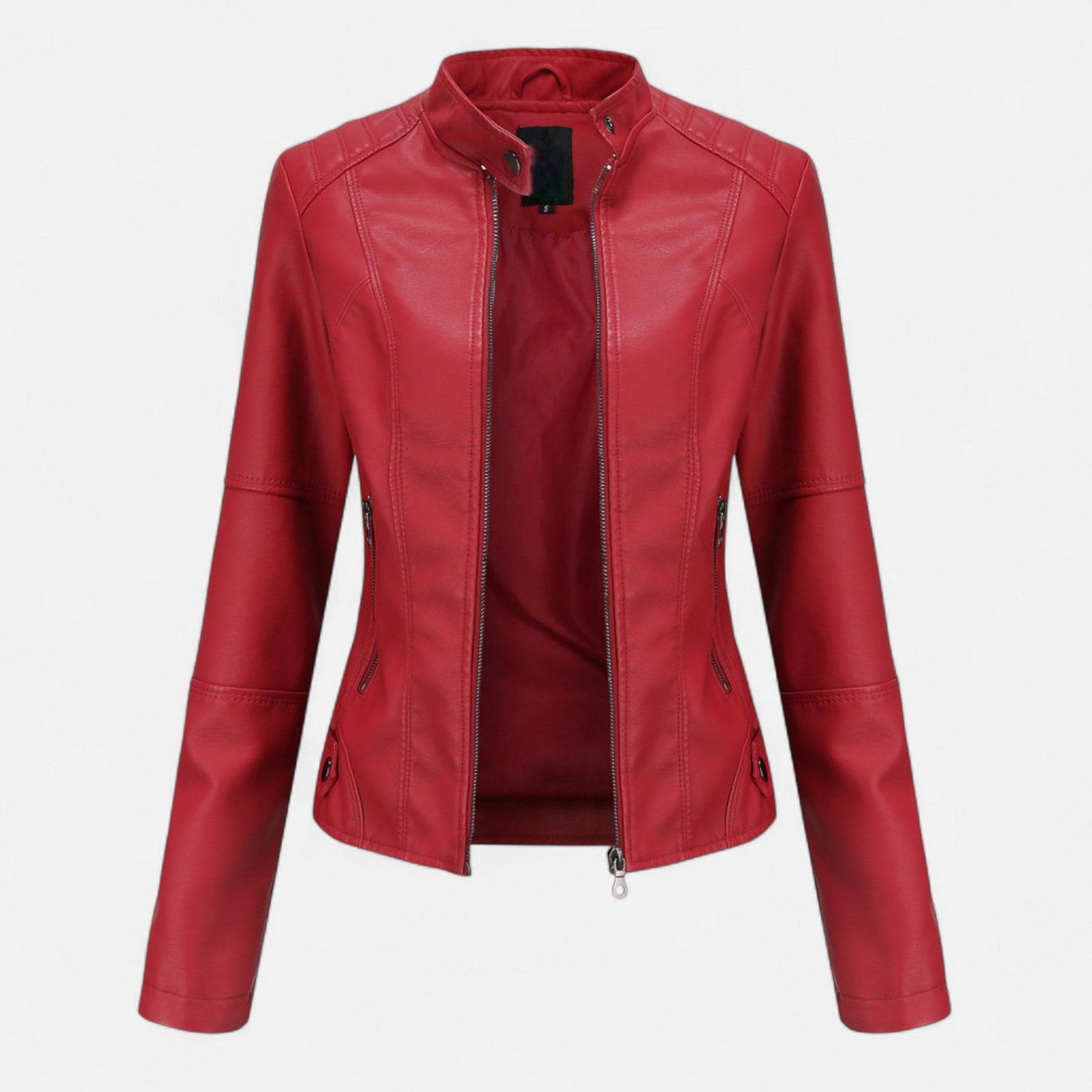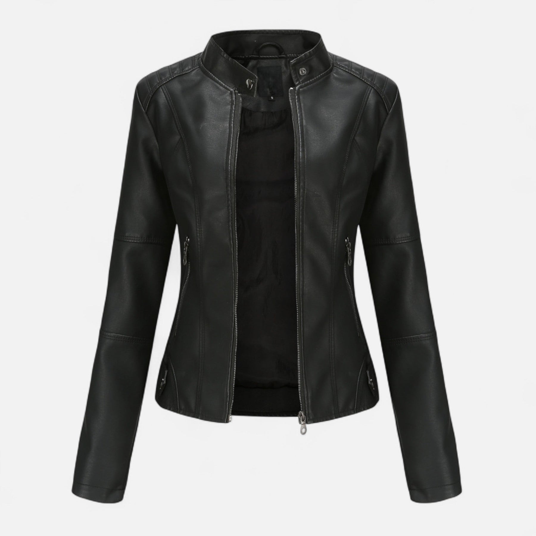 Die Emelia Lederjacke verkörpert den perfekten Mix aus klassischer Eleganz und moderner Stärke. Gefertigt aus hochwertigem, veganem PU-Leder besticht sie durch ihre glatte Oberfläche, den femininen Schnitt und die edlen Details. Der Stehkragen und die strukturierte Passform verleihen jeder Silhouette Selbstbewusstsein – ob beim Stadtbummel, im Büro oder beim Abendessen mit Freunden. Eine Jacke, die deinen Look sofort aufwertet.