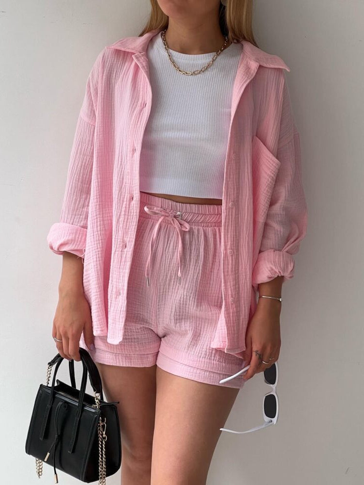 Unser Elsbeth Baumwolle 2-Stück Set ist die perfekte Wahl für alle, die bequeme Kleidung suchen, ohne auf Stil zu verzichten. Hergestellt aus hochwertiger Baumwolle, sorgt dieses lässige Set dafür, dass Sie sich den ganzen Tag über kühl und entspannt fühlen. Das Oberteil mit seinem eleganten Reverskragen verleiht dem Ensemble eine Note von Eleganz, während die Shorts eine verspielte Ausstrahlung haben, die perfekt für die warmen Sommermonate ist.